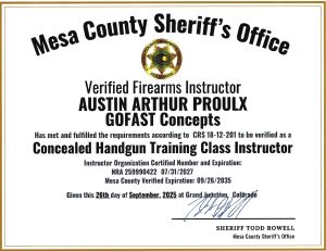Now offering Concealed Handgun Permit and CHP renewal classes for Mesa County, Colorado!